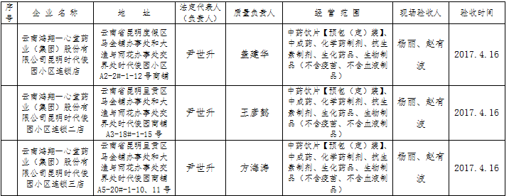 《药品经营许可证》(零售)公示:云南鸿翔一心堂药业(集团)股份有限公司昆明时代俊园小区连锁店、连锁二店、连锁三店