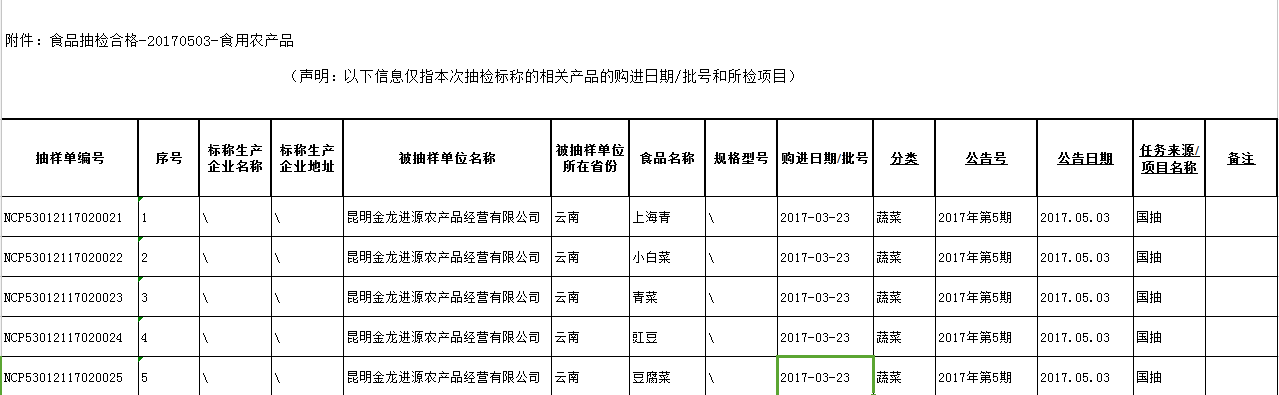 附件:食品抽检合格-20170503-食用农产品