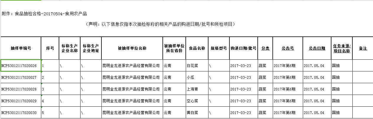 附件:食品抽检合格-20170504-食用农产品