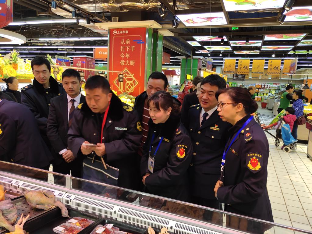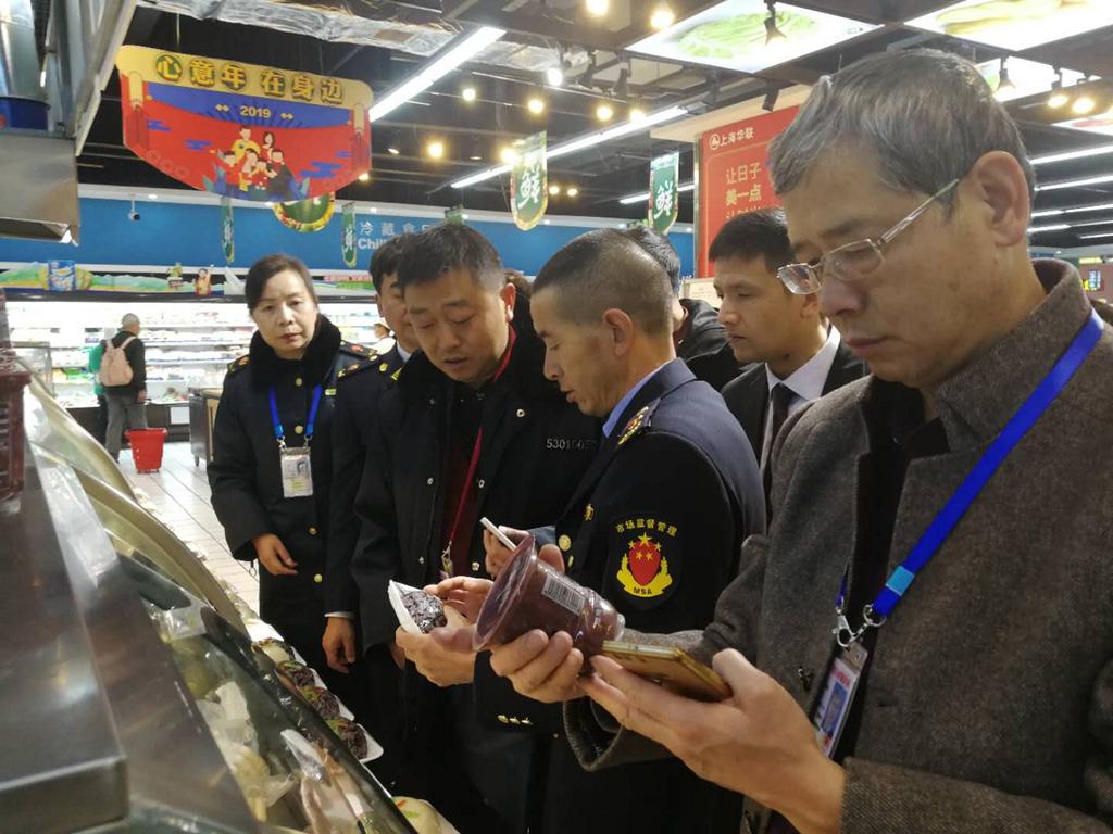 2月1日,昆明市食品药品监督管理局食品总监陈炳旭带队联合呈贡区市场监管局对春节前食品安全监管工作进行检查,检查组实地对七彩云南商业区的超市、餐饮单位进行了检查。