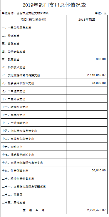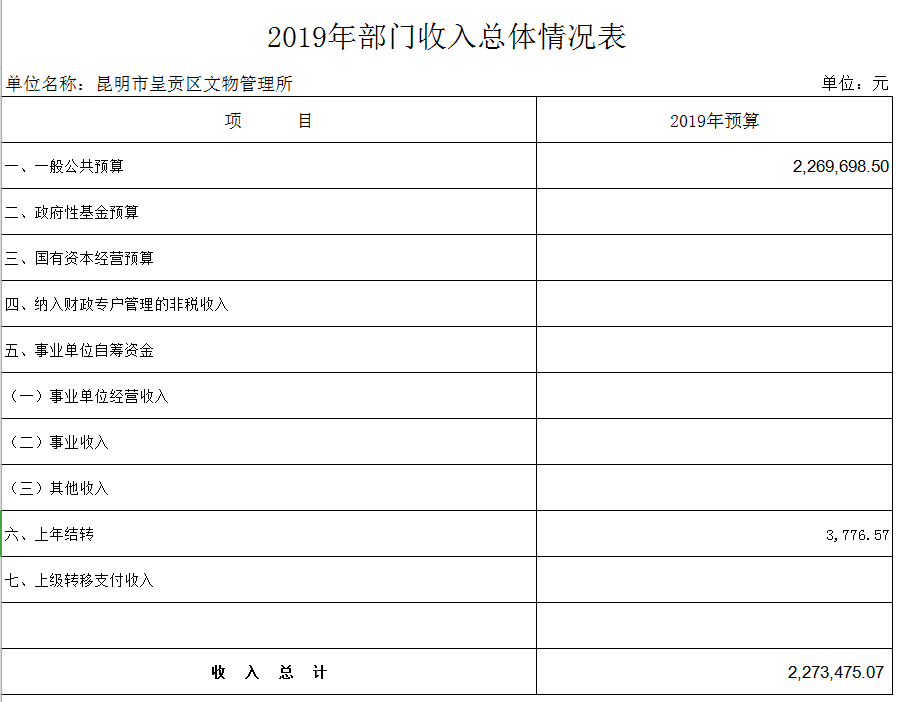 第二部分 昆明市呈贡区文物管理所2019年部门预算表