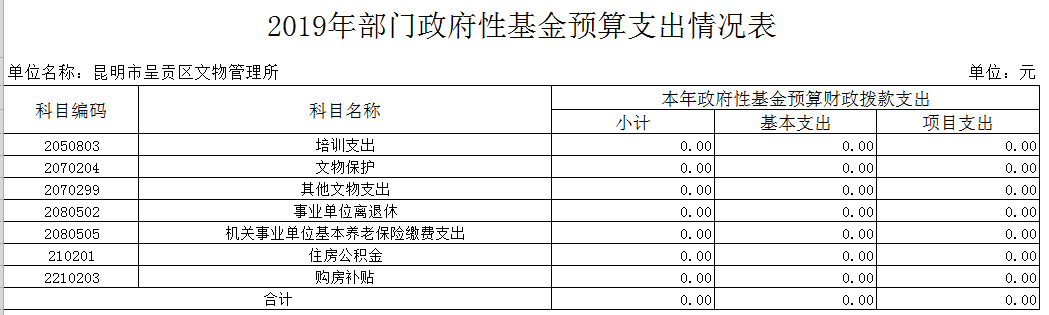2019年昆明市呈贡区文物管理所无政府采购预算。