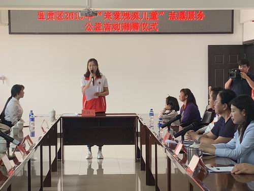 呈贡区红十字会志愿者李媛媛宣读《关爱残疾儿童倡议书》,呼吁共同关爱残疾儿童。