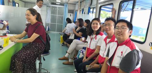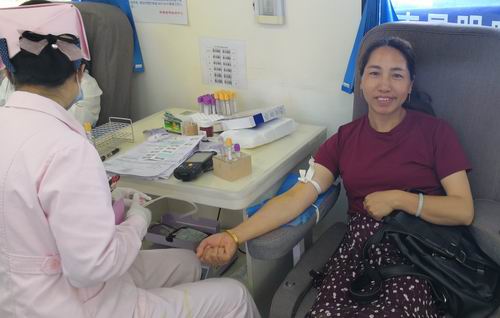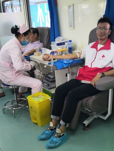 呈贡区红十字会在秘书长刘迎萍带领下,现场全体工作人员均参加无偿献血活动,4人共献血1400毫升。