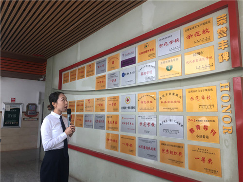 “我校始终把‘引领教师队伍建设专业成长、学生养成教育、校园文化建设’作为党建工作的重点。坚持以政治学习强思想、团结务实强作风、反腐倡廉强肌体的‘三强建设’,以健全完善的党支部工作体系、抓好责任规范、完善党建长廊的‘三抓规范’来筑‘堡垒’,夯实学校育人基础。通过争当学习先锋、师德先锋、教学先锋‘三比先锋’,发挥党员先锋模范作用,促教师队伍发展。”昆明市呈贡新区第一小学党支部书记兼校长郭丽红介绍,学校党支部非常重视学生的养成教育,让孩子们从小善心待人,诚心做事。从2013学年至2017学年,学校共有100余名学生被评为呈贡区“五好少年”。下一步,学校会继续以“立百年后厚德,树时代新人”为思想,希望全体师生要有低头奋进的智慧和抬头看天的情怀。