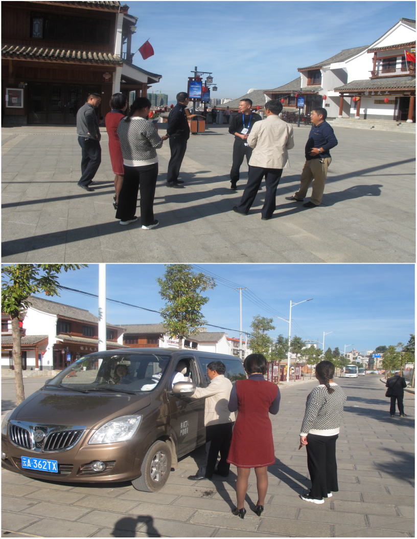 11月1日接到举报电话,有多辆旅游大巴车及商务车拉游客到三台山,车停在三台龙井步行街,旅行社或导游(工作人员)有涉嫌指定到三台龙井街购物店进行购物的嫌疑,将该情况汇报给大队长后,大队长高度重视,立即带领2名执法人员及2名工作人员到现场对举报情况进行核实,经查:在三台龙井步行街确实发现多辆大巴车及商务车停在三台龙井步行街,现场联系城关派出所、昆明市运管局呈贡分局共11人开展联合执法,我队执法人员调查过程中发现一名疑似导游的工作人员正在带游客从旅游车上下来,将行李放在指定的房间,我们对该工作人员和游客进行取证和收集信息,该团队属云南某某国际旅行社有限公司,我们将根据收集的证据进一步调查。昆明市交通运输管理局呈贡分局对未取得营运资质的3辆商务车行驶证驾驶员执照进行暂扣,各职能部门将按照自己的工作职能进行调查 。
