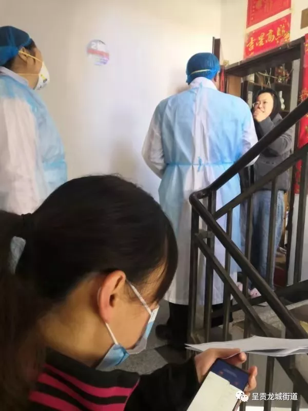 龙城社区联合社区卫生服务中心,上门为湖北返呈人员测量体温