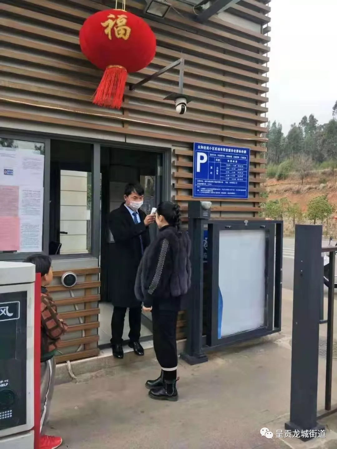 众和社区物业对小区出入人员进行体温检测