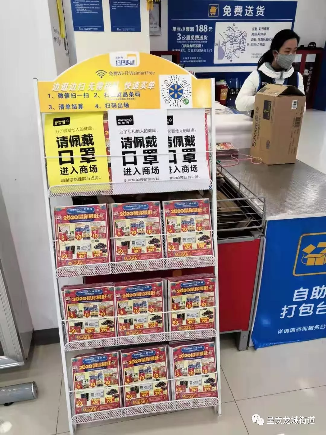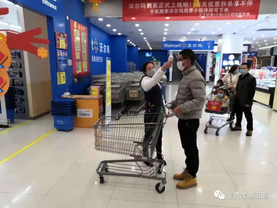 街道辖区沃尔玛超市对所有入场人员测体温,严格要求佩戴口罩