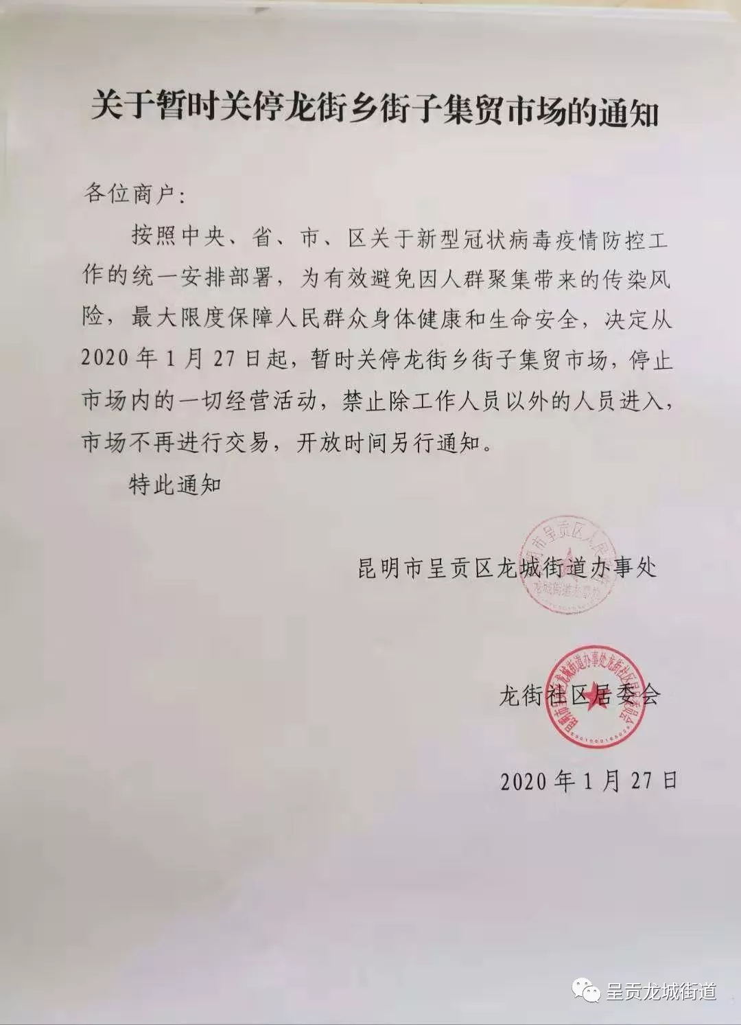 关停龙街通知