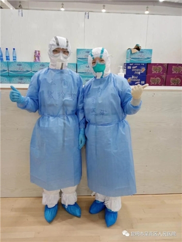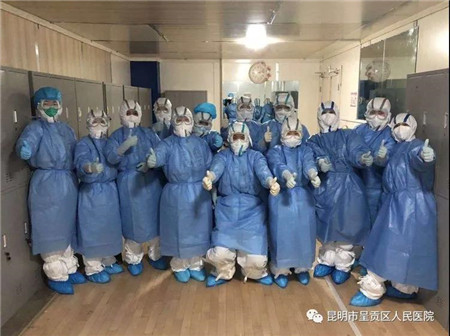出发前,我们团队分管护理的老师们,再次郑重的为我们讲解了新型冠状病毒肺炎的相关病患护理及个人防护知识,如何严格做好防护等相关注意事项,并从心理上安慰大家,在很大程度上 缓解了我们紧张焦虑的情绪。之前无数次穿脱隔离衣的练习,网课培训课上的系统护理管理系统,今天终于有用武之地了!大家都摩拳擦掌,跃跃欲试。穿戴好防护隔离服、帽子、眼罩、手套、鞋套……等等,并互相检查确认无误后,我们来了张看不清是谁的进方舱前的最后一张照片,先后进舱接着完成下一步的准备工作。