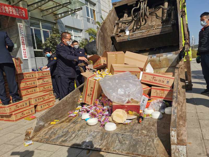 312日,呈贡区市场监督管理局组织开展罚没物资销毁行动,对2019年度的罚没物资进行集中统一销毁处理。
