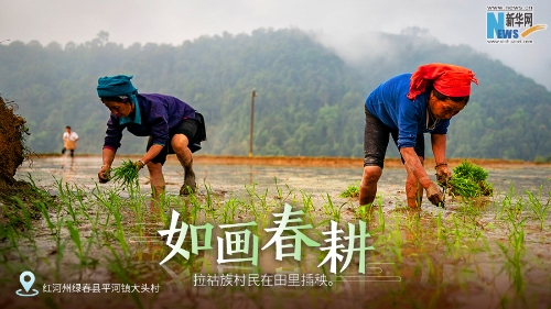 镜头下的云南田间地头一派繁忙景象,村民们不误农时保春耕。(完)