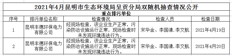2021年4月昆明市生态环境局呈贡分局双随机抽查情况公开