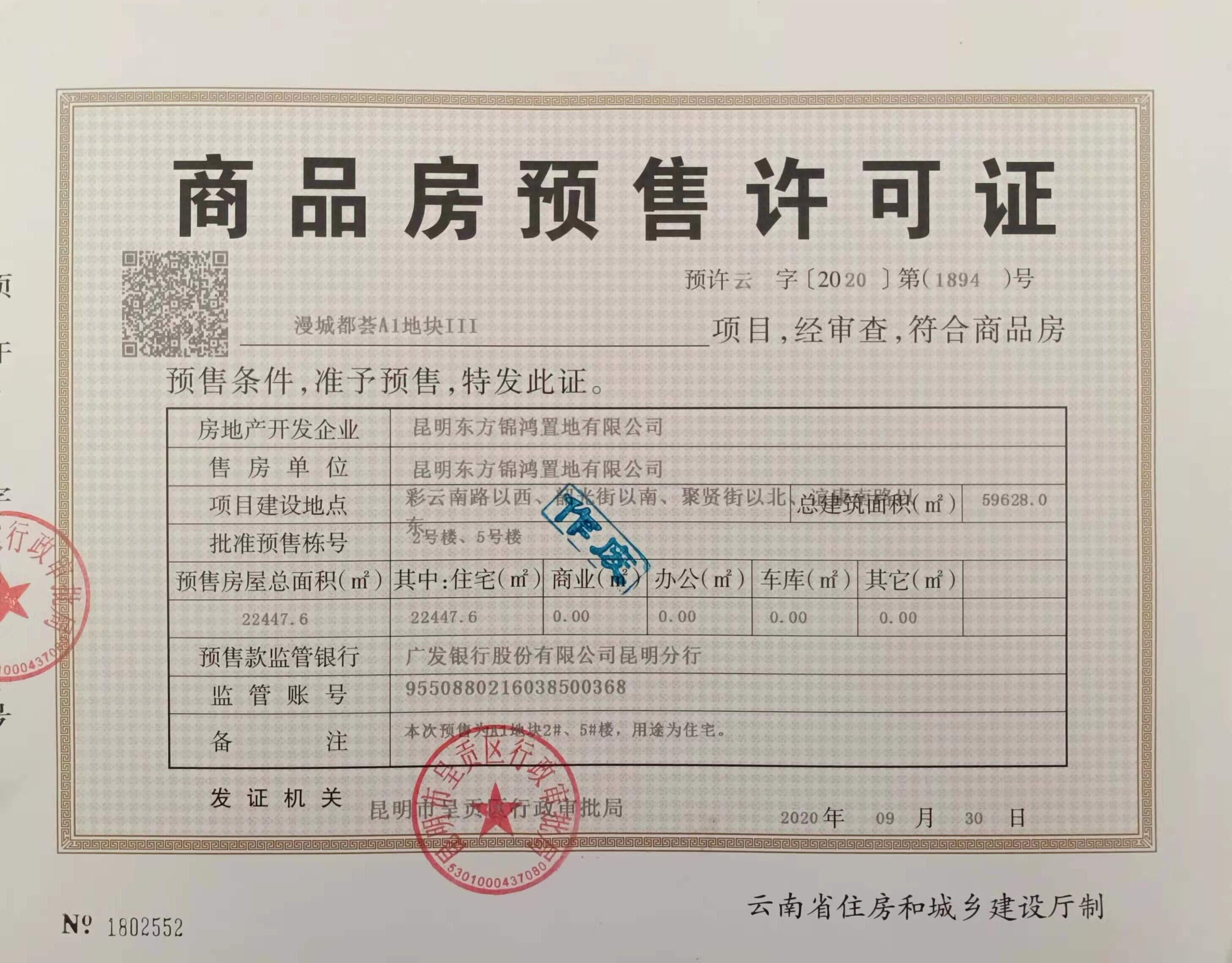 3.变更后的预售许可证证号:预许云字〔2020〕第(1894)号变更Ⅰ