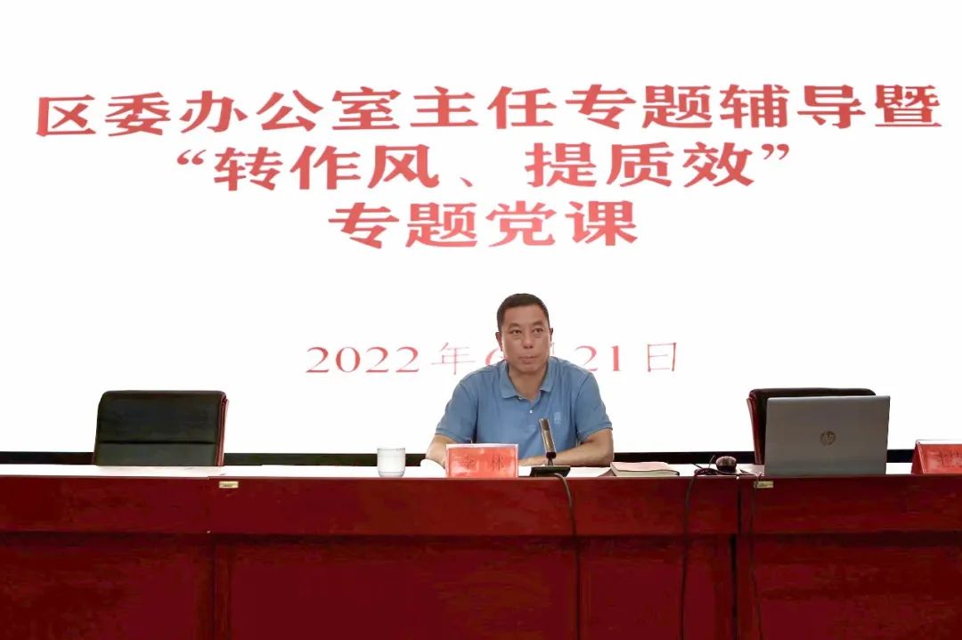 区委常委、区委办公室主任李林作动员讲话并讲授了“转作风、提质效”的专题党课。他希望办公室干部:要进一步提高认识,切实增强做好办公室工作的责任感和荣誉感,要认识到办公室是单位形象的窗口门面,是协调内外的桥梁枢纽,是党委政府决策的参谋助手。要进一步拓宽视野,充分认识新形势下对办公室工作的新要求。要进一步认清形势,正确认识当前办公室工作面临的问题和存在的不足。当前的办公室工作存在服务质量、工作效率还不够高,队伍建设抓得还不到位等问题。要进一步强化担当,统筹抓好办公室各项重点工作,要在讲政治守规矩、文稿质量、综合协调、督查落实、后勤保障上狠下功夫。要进一步转变作风,切实把作风革命、效能革命贯穿于履职尽责、推动发展全过程,持之以恒改进干部作风,改进文风,改进会风。