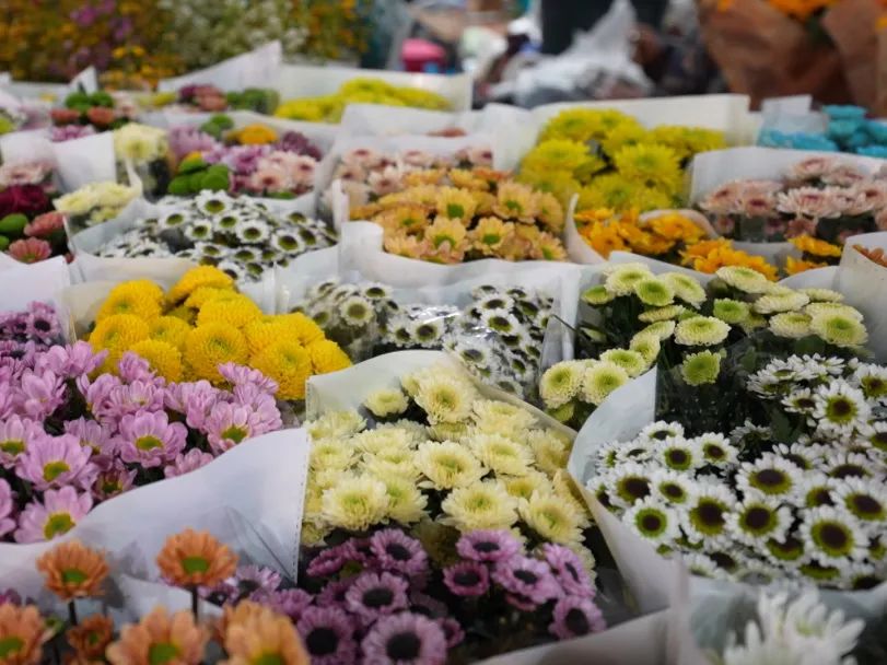 在斗南,成捆的玫瑰、康乃馨和非洲菊,各式鲜花堆放在市场上几块一支、十多块一束,典型的鲜花卖出了青菜价。