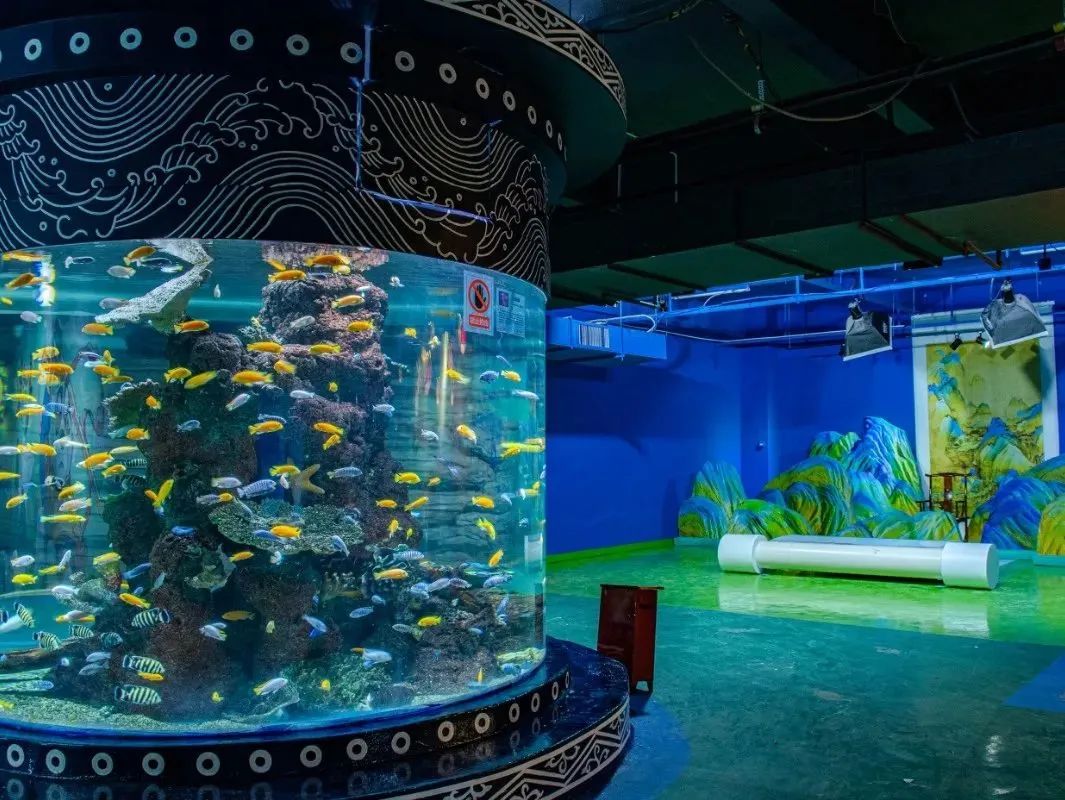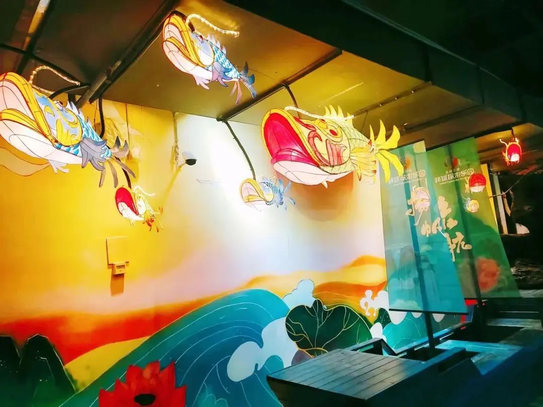 园区内墙面以国风设计为理念,传统文化与海洋知识相互结合,哪吒闹海、郑和下西洋等神话国潮画卷在这里徐徐展开。