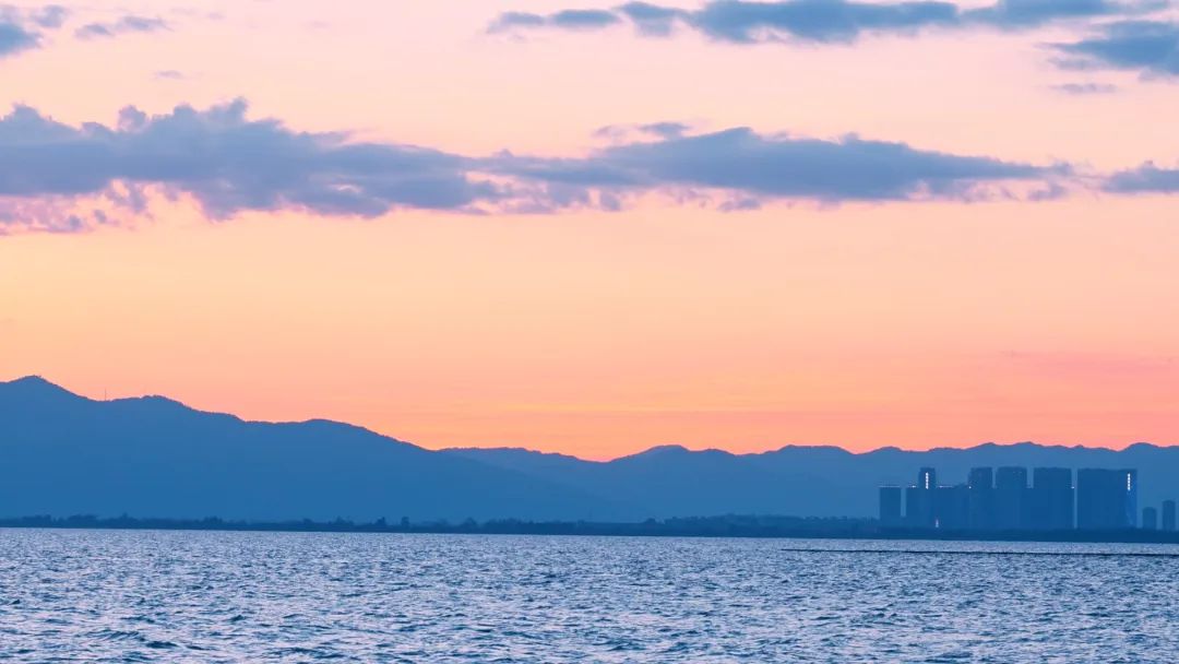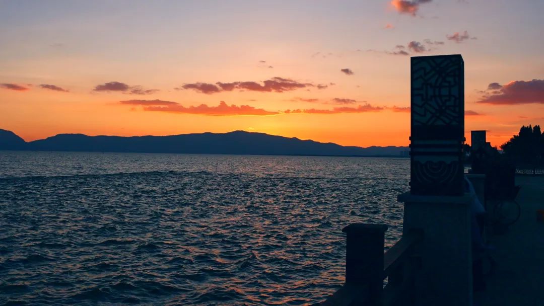 傍晚在滇池边,一边吹着凉风踏着浪,一边感受夕阳的绚烂。