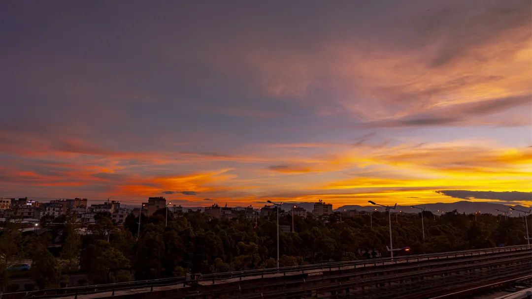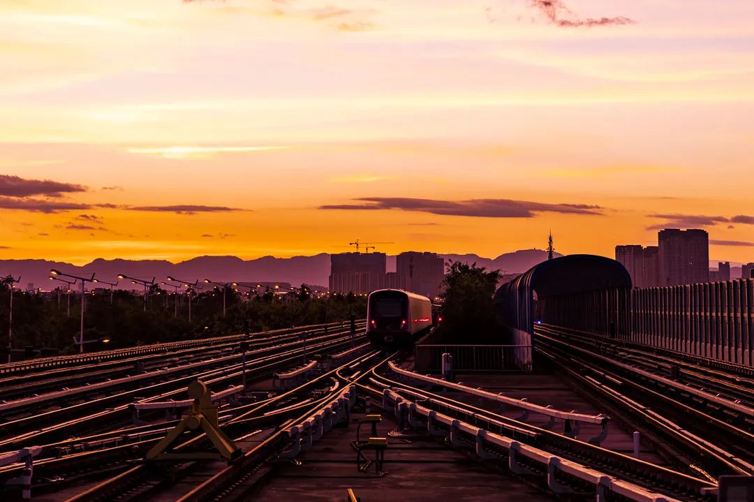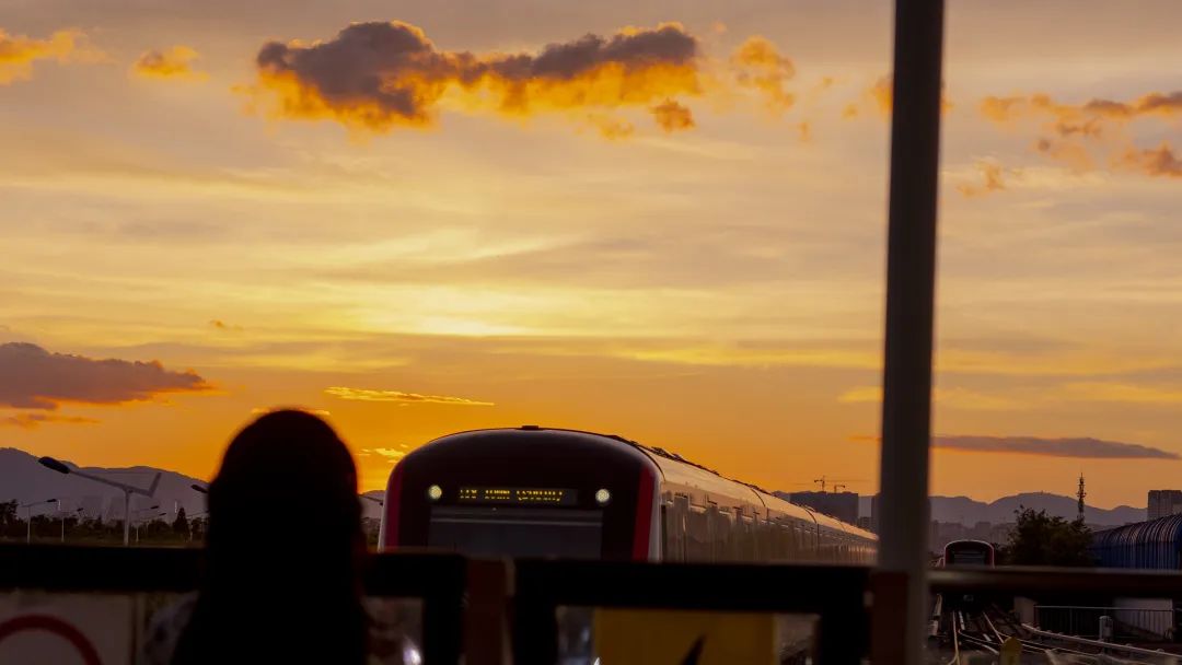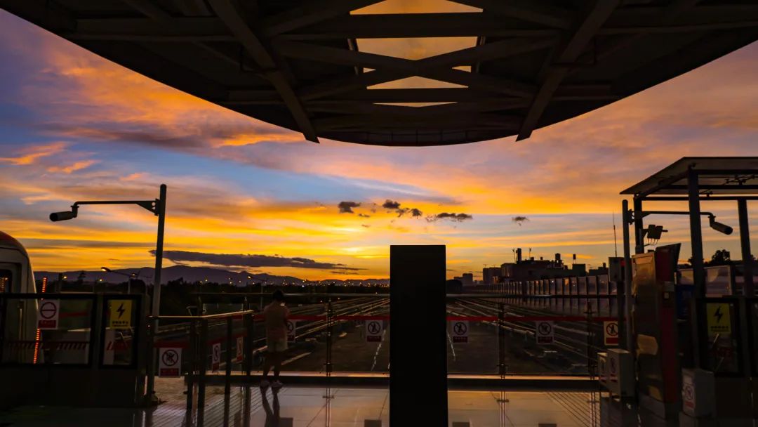 得益于这优越的位置,在站台上便可看到完整的日落。