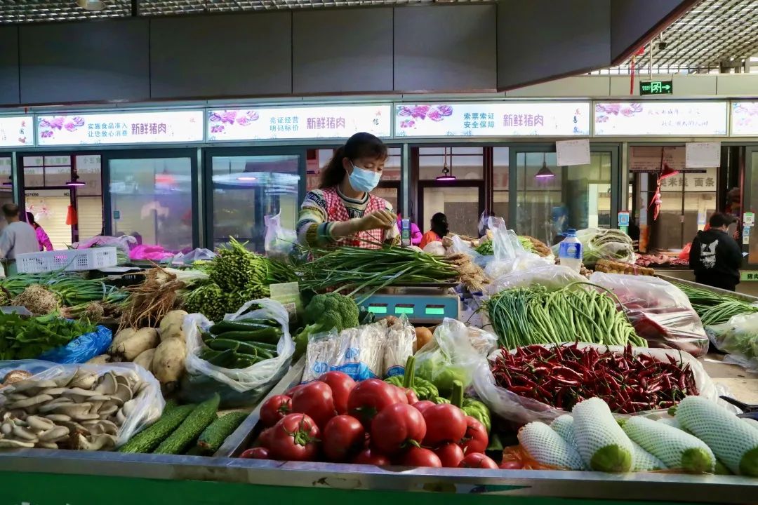 在市场内记者看到,市场监管局的工作人员正在对经营户的健康码、行程卡、24小时核酸检测结果及销售的农产品来源等进行详细询问检查。身着绿马甲的志愿者在市场内提醒商户严格遵守疫情防控要求开展规范经营。