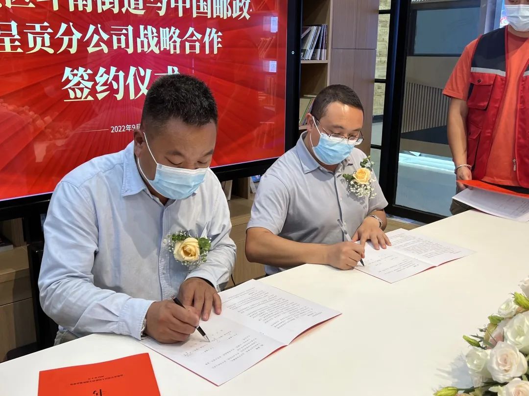 9月14日,呈贡区斗南街道、江尾社区居委会与中国邮政呈贡分公司签订战略合作发展协议,共同推动产邮融合发展。