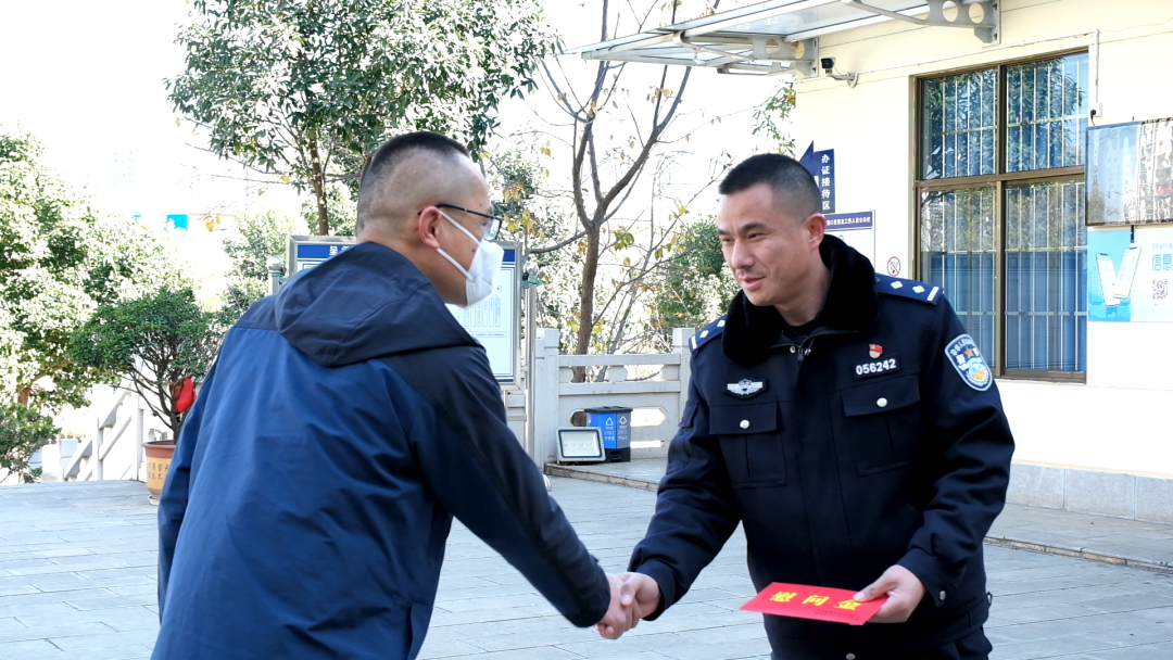 随后,慰问组来到石龙湖派出所,看望慰问值班干警。代表区委区政府对公安干警表示慰问和感谢。李江说,2022年,全区公安干警坚守岗位、履职尽责为平安呈贡建设贡献了力量,新的一年祝愿大家身体健康,心想事成,并送上慰问金。