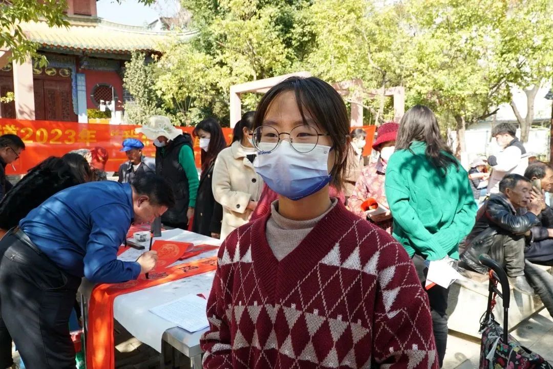 “我当时看见横幅,想进来写一副对联,回去过年比较喜庆,又看见那边有剪纸的小朋友,看着他们玩得开心也想尝试一下。” 今年大三的陶凤仙说:“新年的愿望是希望考试过关。”