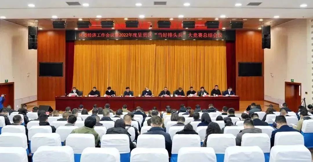 1月19日,呈贡区委召开2022年度经济工作会议暨2022年度呈贡区“当好排头兵”大竞赛总结会议。深入学习贯彻党的二十大精神和习近平总书记在中央经济工作会议上的重要讲话精神,贯彻落实省委十一届三次全会和市委十二届四次全会精神以及省委、市委经济工作会议精神,围绕区委三届四次全会作出的安排部署,全面总结 2022 年经济工作及“当好排头兵”大竞赛活动,分析形势任务,安排部署2023 年重点工作,进一步动员全区上下以更加奋发有为的精神状态和“时时放心不下”的责任意识,坚定信心、振奋精神,做好经济工作,推动呈贡在昆明现代化建设中“突破崛起、先行示范、率先达标”,为全面推进呈贡社会主义现代化建设开好局、起好步。