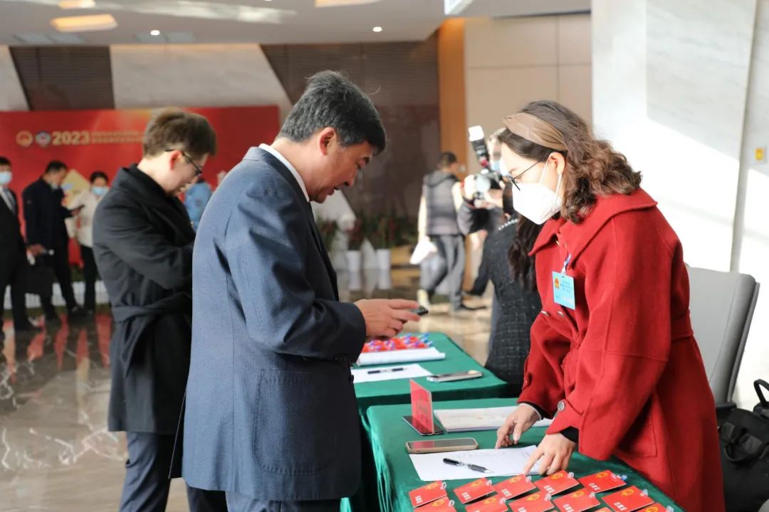 人大代表们陆续抵达会场报到