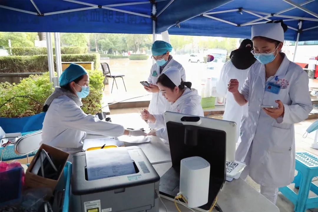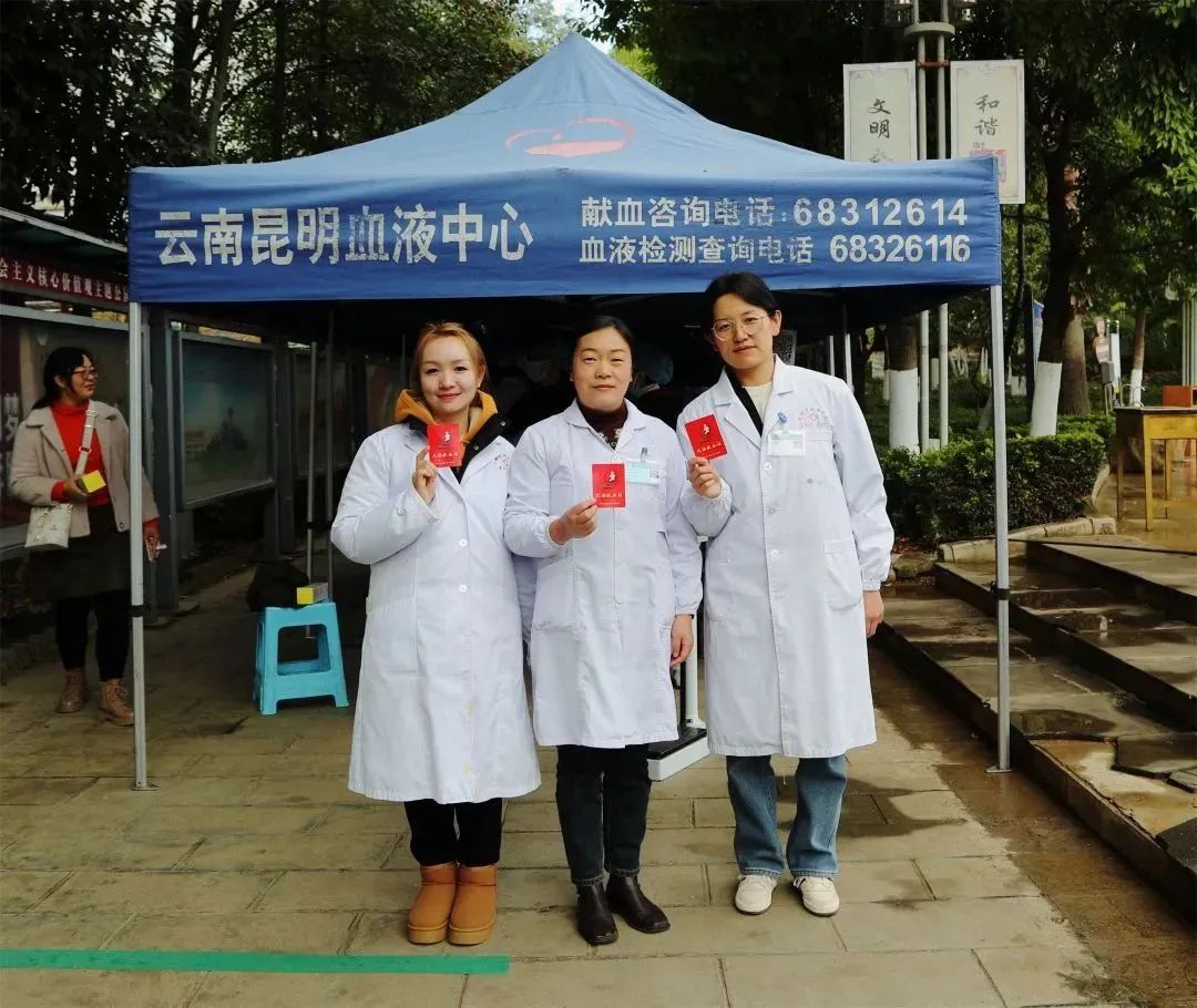 上午10:00,来自昆明市延安医院呈贡医院(呈贡区人民医院)的医务人员们有序到达献血地点,依次领取无偿献血登记表,接受健康征询、体温检测、信息登记、血压测量、血液检验、现场采血等。