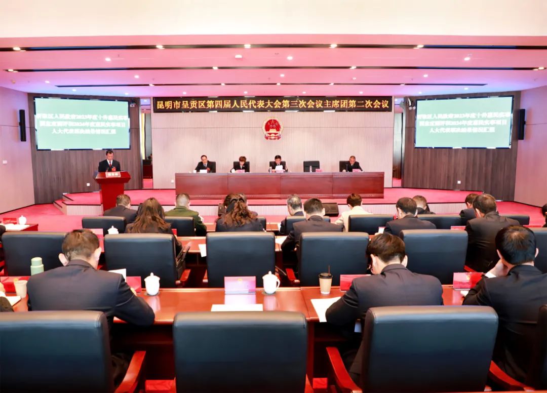 经大会主席团确认,区人民政府2023年度十件惠民实事完成情况满意度测评结果为“满意”。按照得票多少由高到低排序,2024年度呈贡区人民政府十件惠民实事为:持续提升基础教育服务水平;继续完善养老基础设施布局;加快推进过渡期失地群众回迁安置;持续优化交通出行条件;保障涉农居民饮水安全;实现社保、医保就近办;促进城乡就业;打造新一批夜间经济示范街区;推动惠民殡葬项目实施;打造春城花都展示窗口。