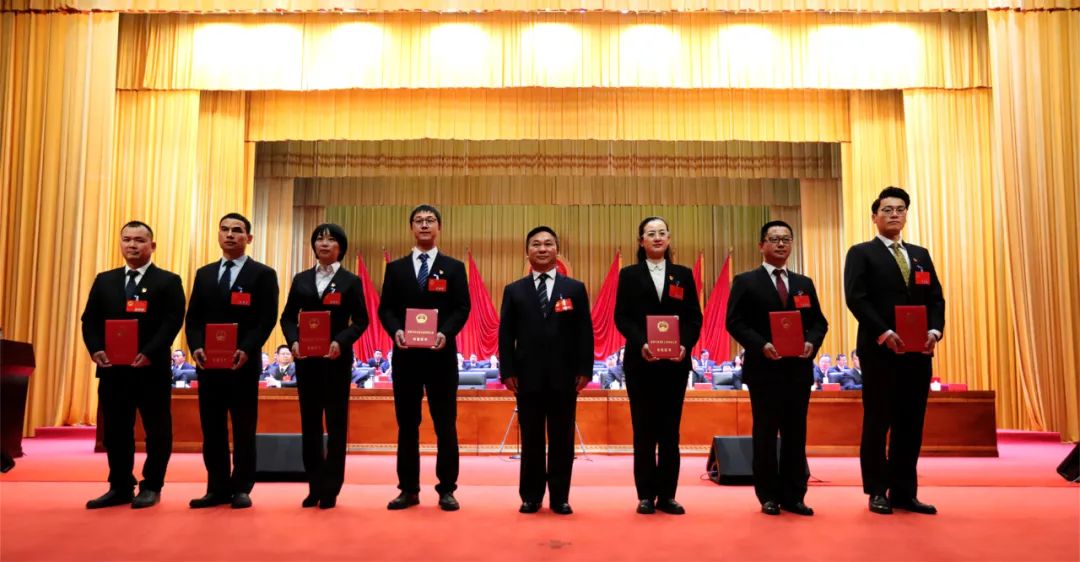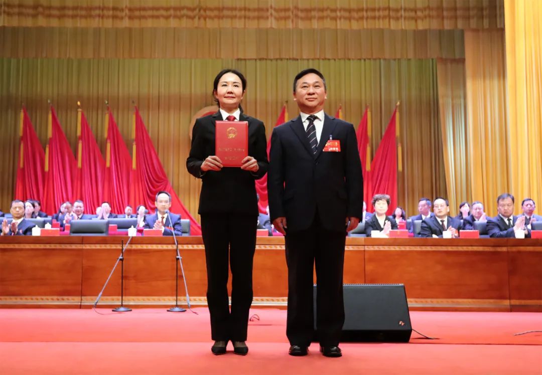区人大常委会主任、大会执行主席马宏途为新当选的昆明市呈贡区人大常委会委员和昆明市呈贡区人民法院院长颁发当选证书。