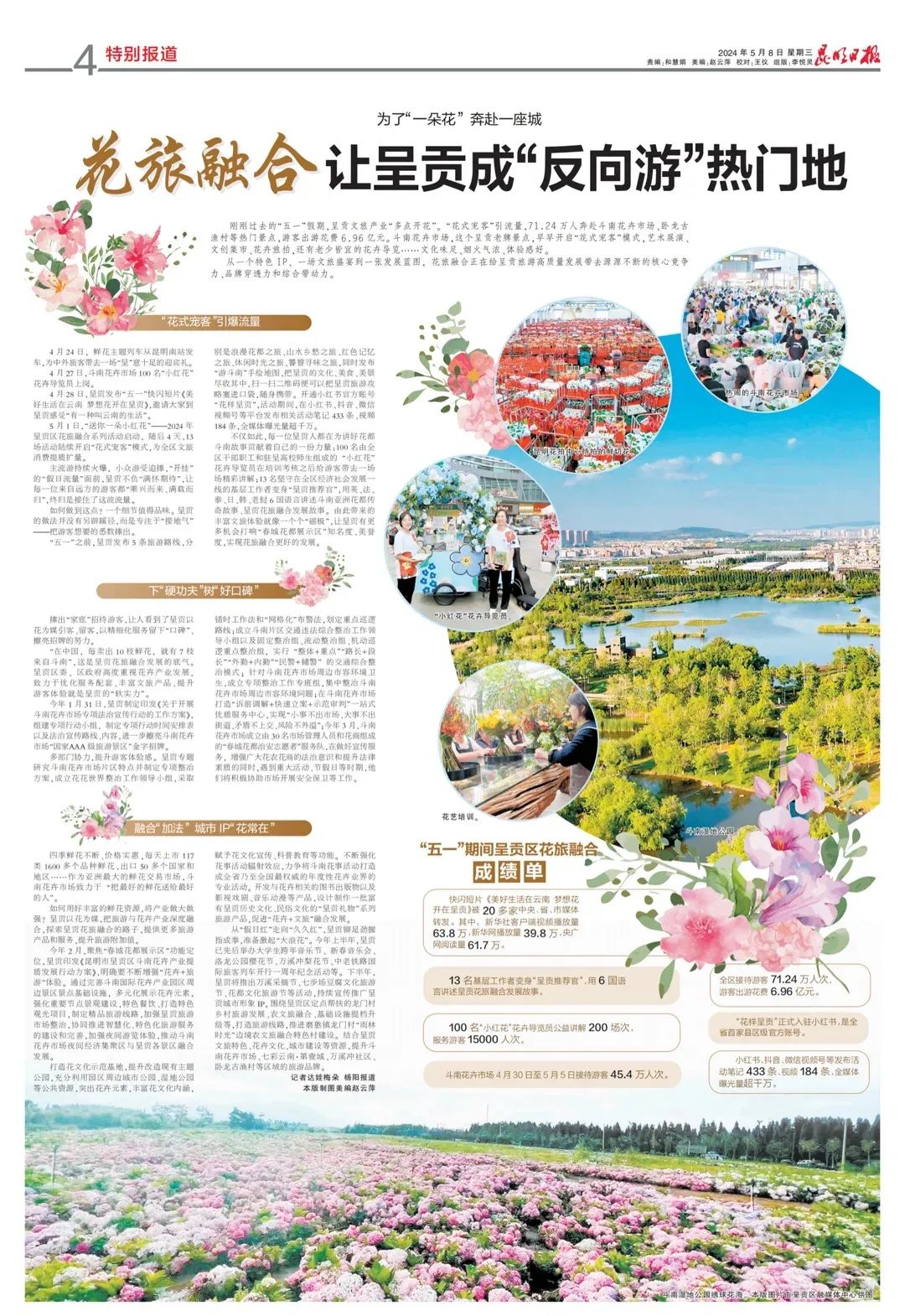 做优品牌宣推。厚植呈贡文化,推广和传播斗南花卉的品牌影响力,促进花卉与文化创意、旅游、会展等相关产业融合发展,擦亮“有一种叫斗南的浪漫”城市品牌;在“三八”国际妇女节、“五一”劳动节等特殊时间节点,联动商圈、企业,在呈贡地标开展主题快闪、创意灯光秀等破圈宣传活动。