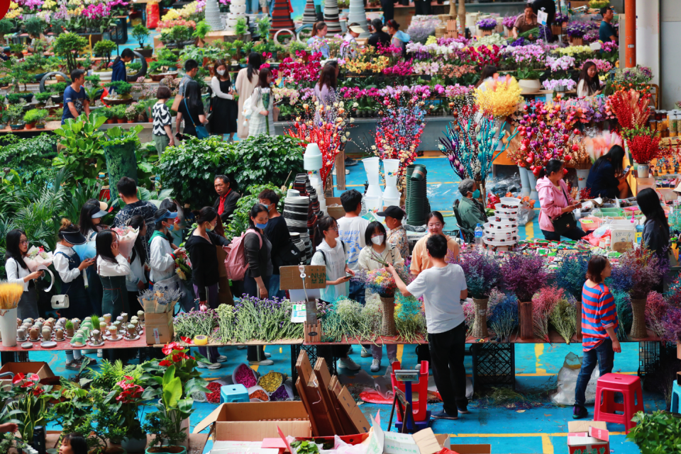 傍晚,走进斗南花卉市场,满眼都是为浪漫事业奋斗的“花卉人”。交易大楼外车水马龙、人头攒动,交易大楼内同样熙熙攘攘、人声鼎沸。从下午一直持续到深夜的交易盛况,以及“全国每10支鲜切花就有7支来自斗南”的数据,令人惊叹!