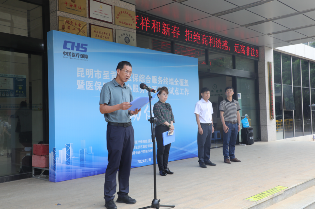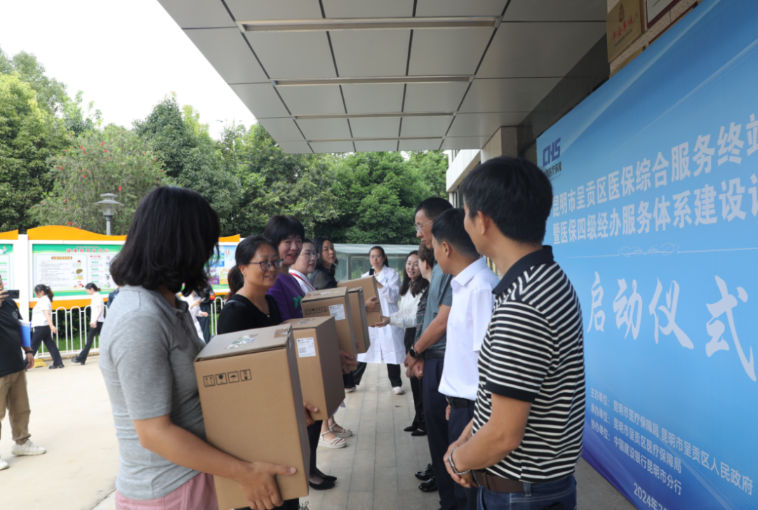 启动仪式上,副区长王会飞、市医保局负责人、建设银行昆明市分行滇龙支行负责人分别致辞,现场为辖区街道卫生服务中心、社区卫生室、定点医药机构代表发放医保综合服务终端设备。