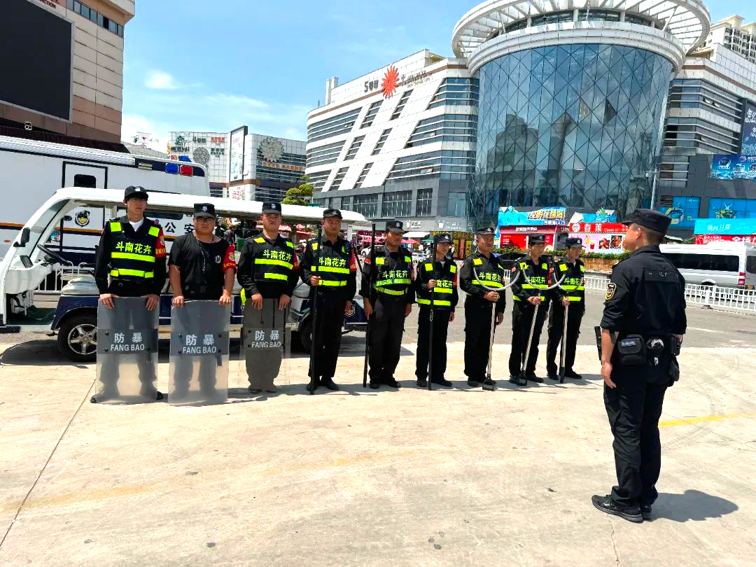 为进一步提升工作人员快速反应、及时处置各类突发事件的能力,最大限度保护人民群众生命财产安全,巡特警大队定期到斗南花市对保安、网格员及市场管理人员开展处置技能培训。5月30日以来,巡特警大队教官团队先后7次到斗南花市,为花市400余名保安人员、市场管理人员及志愿者开展处置技能培训。通过讲解理论知识、现场演示“棍、盾、叉”等警械使用技巧、分组练习、模拟警情开展处置的形式,参训人员更加熟练掌握队列基本动作等技能,最大限度缩短工作人员处置突发事件的反应时间,提高发生紧急事件的处置速度,为花市筑牢安全防线。
