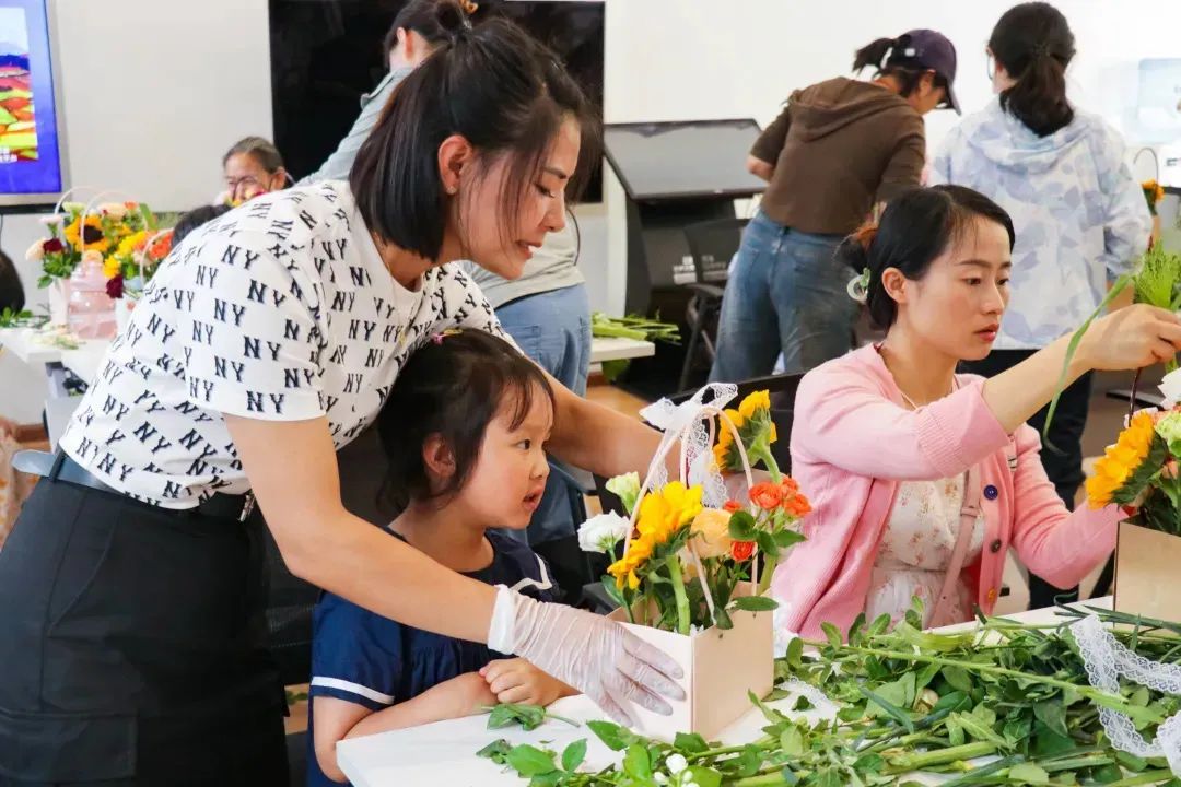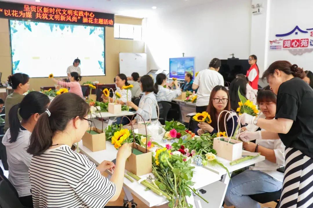 在插花主题活动上,花艺师从基础技巧的精细操作、色彩搭配的艺术法则等进行耐心讲授。大家听得认真,动手插花环节中,大家把对美好生活的向往变成一个个插花作品,插出属于自己的“文明之花”。