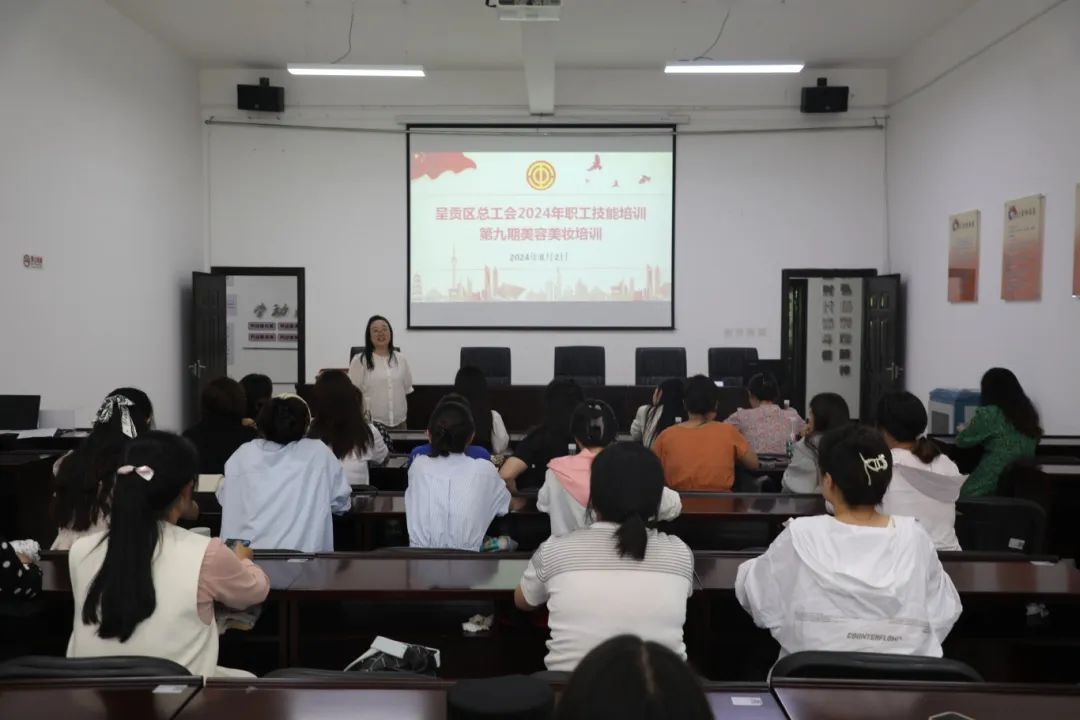 8月2日下午,呈贡区总工会开展主题为“强技赋能展风采 匠心筑梦创未来”的美容美妆培训活动,机关单位及新就业形态劳动者等40名女职工参加。