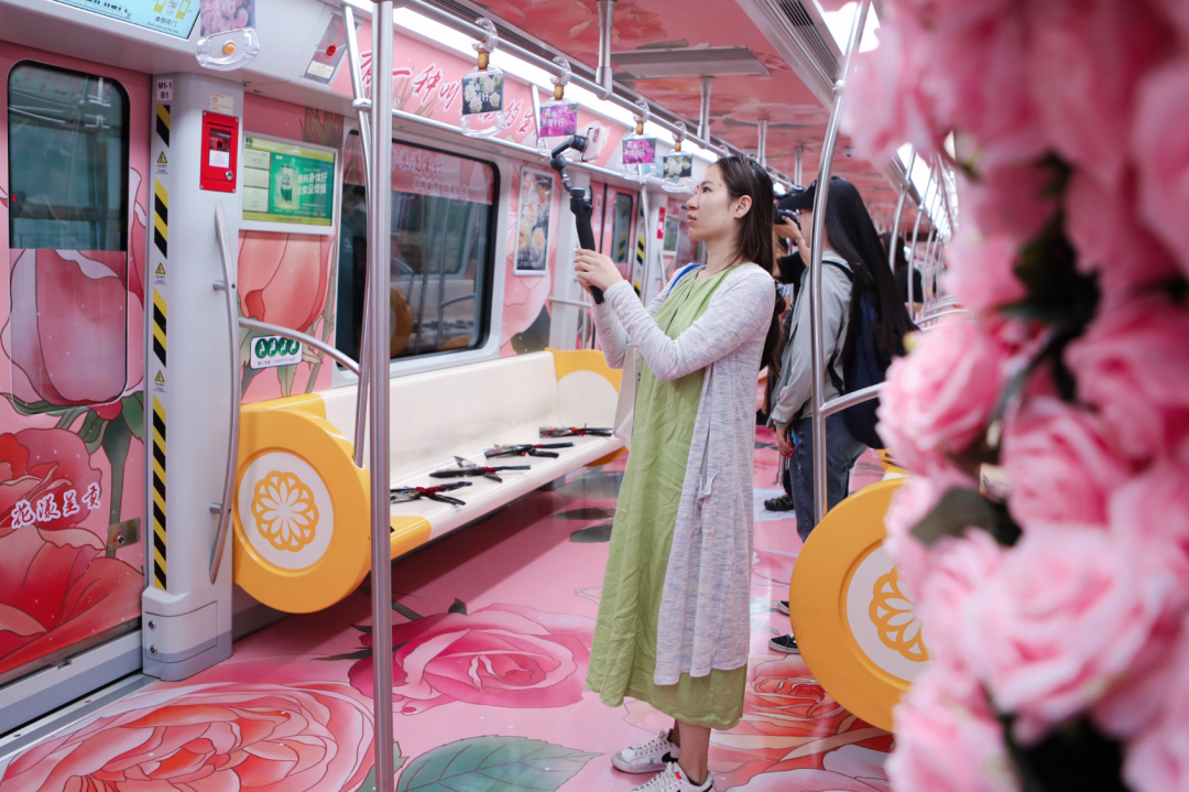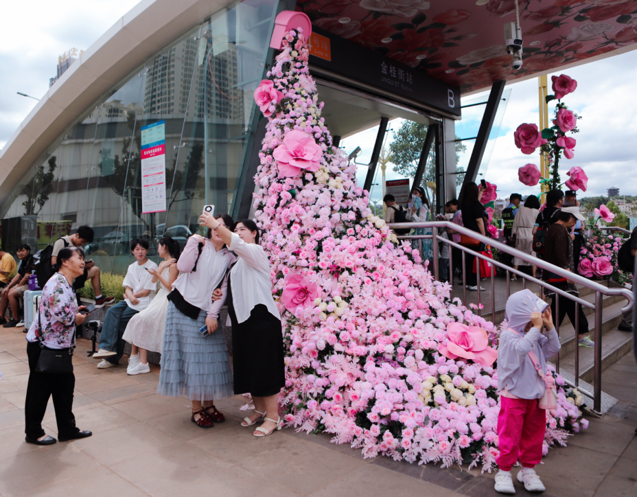 昆明地铁4号线斗南鲜花专列和金桂街鲜花主题站打造时间为一年,从2024年8月至2025年8月,呈贡区结合中秋国庆、元旦春节、母亲节520等节日的主题和气氛,选择一种鲜花作为主元素在车厢内布景装饰,让花漾绽放地铁,持续引流,不断展示斗南美丽形象,提质发展花卉产业。