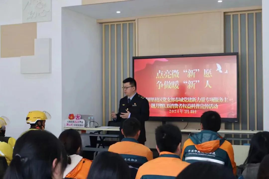 融入花都党建开展“花色”治理。联合斗南信用社党支部、斗南社区党委、梅子社区党委,开展“3·15”国际消费日宣传等主题党日。引导外卖员通过“随手拍”小程序争做食品安全“监督员”、社会治理“网格员”,激活治理“新”力量。建立“问题清单+资源清单+服务清单”工作机制,通过面商交流、实地座谈等,每月“点对点”收集并解答企业问题诉求。认领先锋责任区,加入斗南花都“七色堇”民生保障协调服务队,向花农花商解答市场准入相关问题,现场指导其手机办理个体营业执照;向游客提供接待、解说等服务。在办事大厅设立“小个专”党建工作指导站,为小微企业和个体工商户等提供教育培训、政务办理、便民服务。