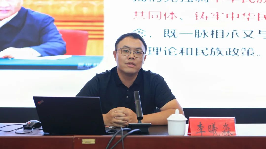 会议邀请云南省委党校民族和文化教研部副主任、云南省铸牢中华民族共同体意识宣讲团成员李曦淼以《铸牢中华民族共同体意识》为主题,围绕“中华民族”从哪里来、“中华民族”是一个共同体、铸牢中华民族共同体意识的重大意义、如何铸牢中华民族共同体意识等方面开展宣讲。