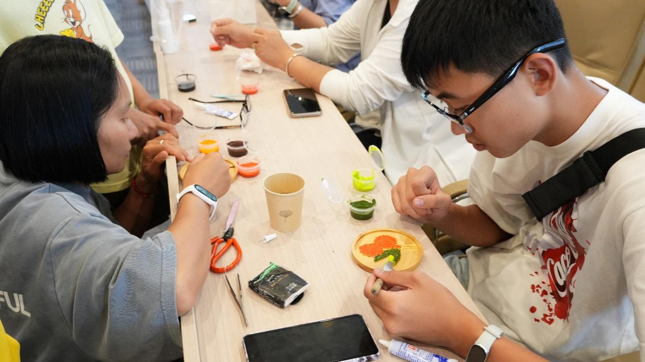 活动现场学习氛围浓厚,读者们认真聆听,深刻感受到阅读历史带来的乐趣。讲授结束后,活动迎来以荔枝为主题的非遗手工体验环节,读者们在专业指导下进行掐丝珐琅制作,感受非遗文化的独特魅力。