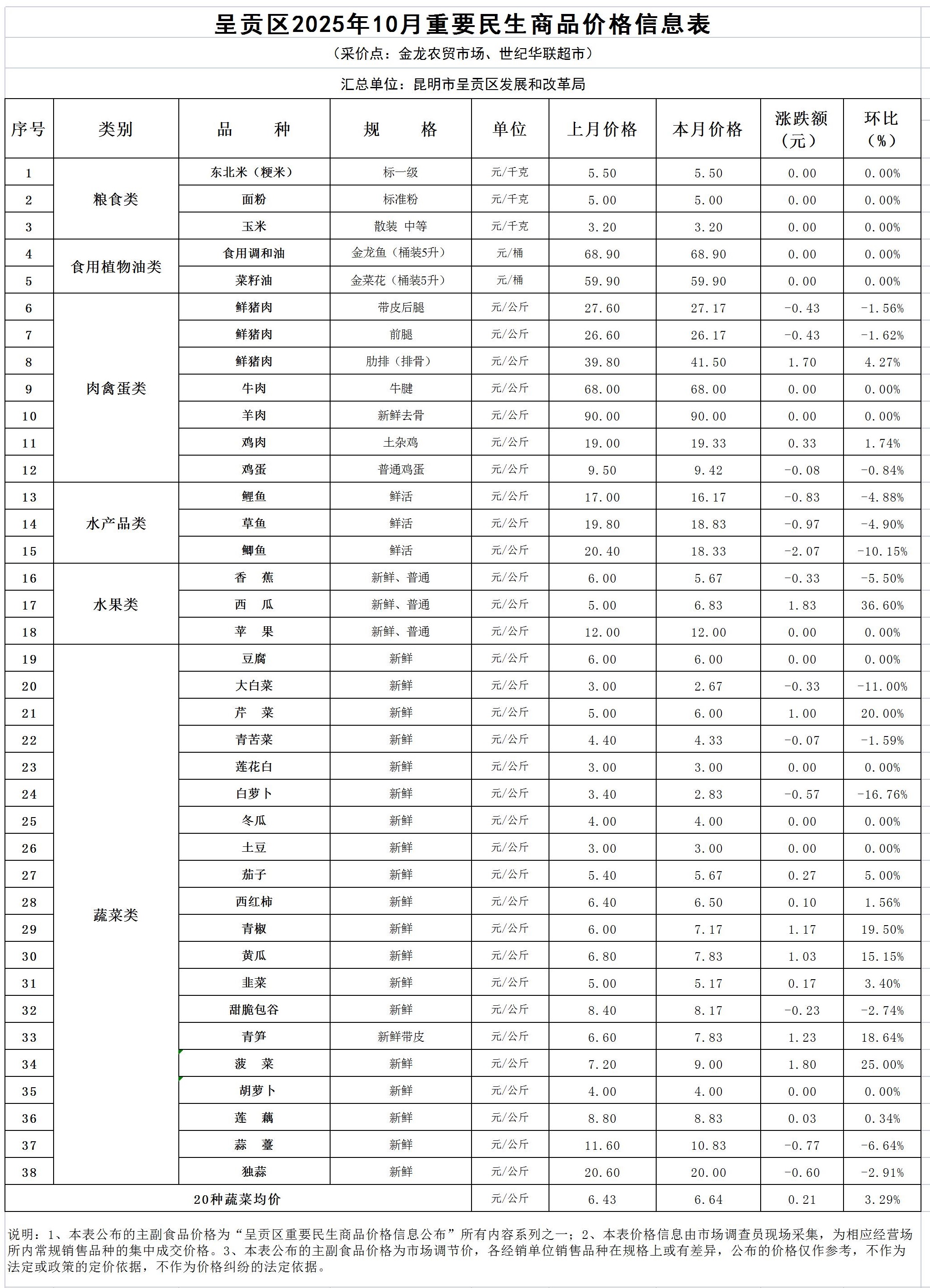 名 称: 呈贡区2025年10月份重要民生商品价格情况