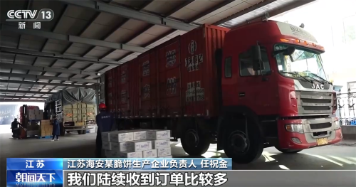 江苏海安某脆饼生产企业负责人 任祝金:我们陆续收到订单比较多,要忙到腊月十五左右。
