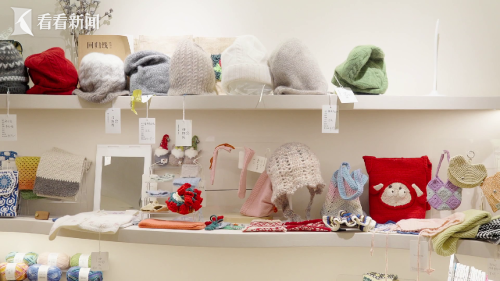 还有不少小姐妹来这里聚会,一边钩针,一边闲谈打趣。一位顾客算了笔账:“这是一种聚会的形式,我觉得还蛮好的。买毛线可能差不多两三百,因为我们是小白嘛,可能还学了两节课,加起来差不多是一千以内的费用。”花上几百块钱,不仅享受了手工创作的乐趣,还能带回有纪念意义的成品。