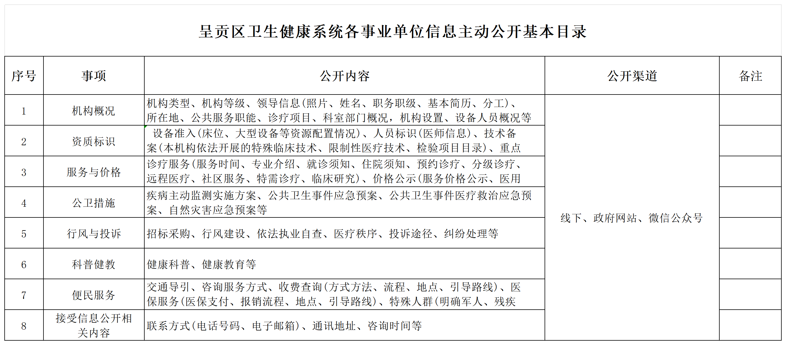 呈贡区卫生健康系统各事业单位信息主动公开基本目录