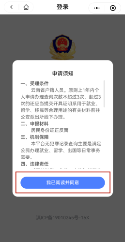 四、仔细阅读【申请须知】,点击【我已阅读并同意】。