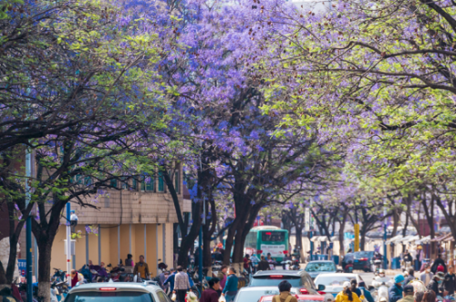 4月中旬至5月中旬,昆明蓝花楹如期盛放,教场中路等街区被紫色花海裹挟,化作浪漫十足的紫色花境,为期30天的限定花期,为“五一”假期注入了独有的滇式浪漫。五华区第八届蓝花楹艺术节于4月10日至5月10日温情启幕,其间推出文创集市、主题音乐节等丰富活动,更联动西山区同步开启“八万春”蓝花楹城市艺术季——前卫西路3.6公里蓝花楹长廊繁花满径,花香与咖啡香、艺术气息交融,打造出一步一景的春日画卷。